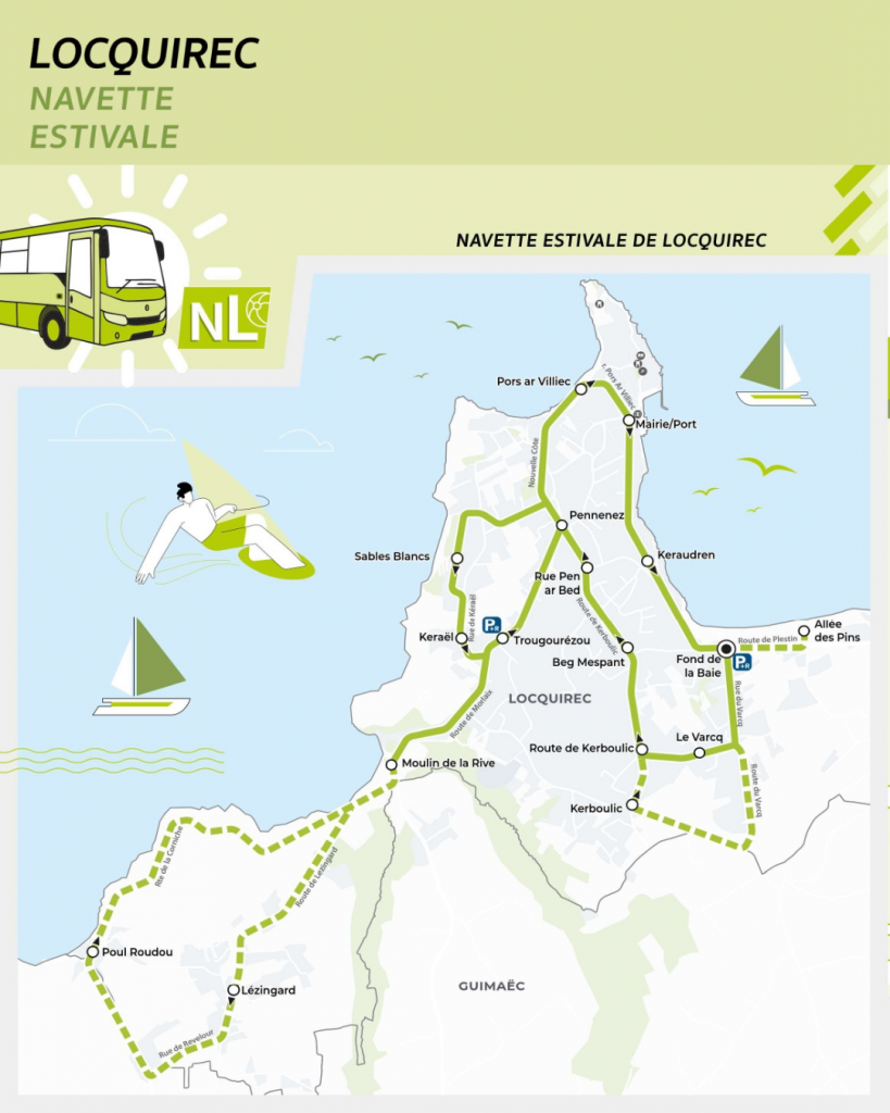 Ce service de navette est mis en correspondance avec la ligne autocar n°30 Morlaix – Lannion, qui permet également des correspondances TGV et TER en gare de Morlaix.